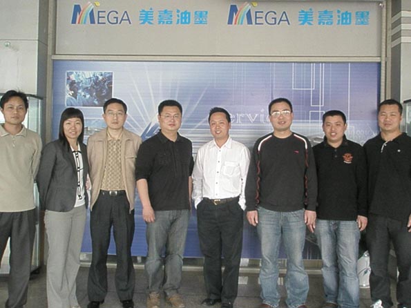 2008年4月26日重慶創(chuàng)意工藝標(biāo)牌制造有限公司王總一行在重慶恒美印刷器材經(jīng)營部喻總的帶領(lǐng)下來我司參觀指導(dǎo).著重與我司交流了現(xiàn)在重慶貼花市場的要求進(jìn)行了詳細(xì)的交流,并肯定了我司貼花油墨在市場上的品質(zhì)。